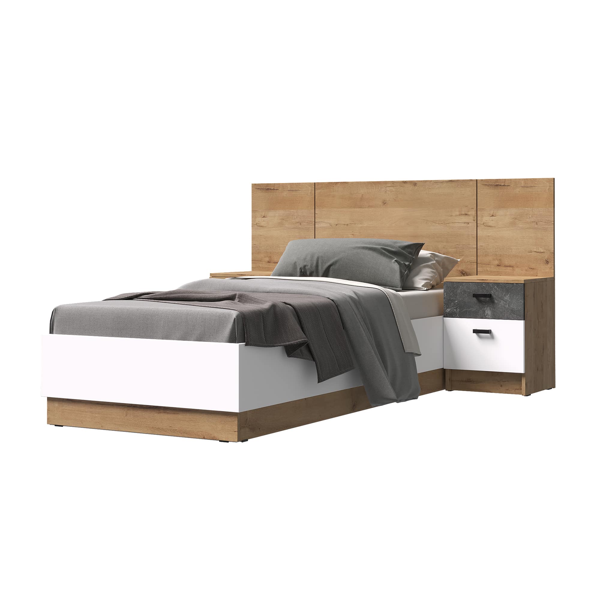 Кровать с подъемным механизмом Адель с тумбами 800х2000 Дуб Вотан-Белый гладкий