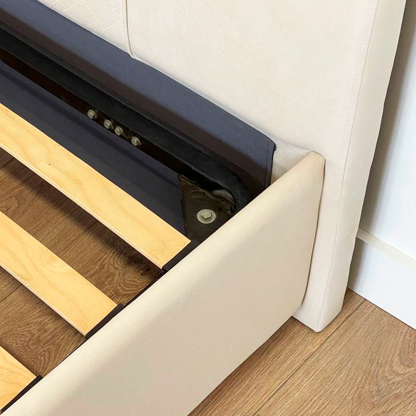 Подъемный механизм позволяет легко поднять верхнюю часть кровати и использовать вместительный ящик для хранения белья или других вещей.