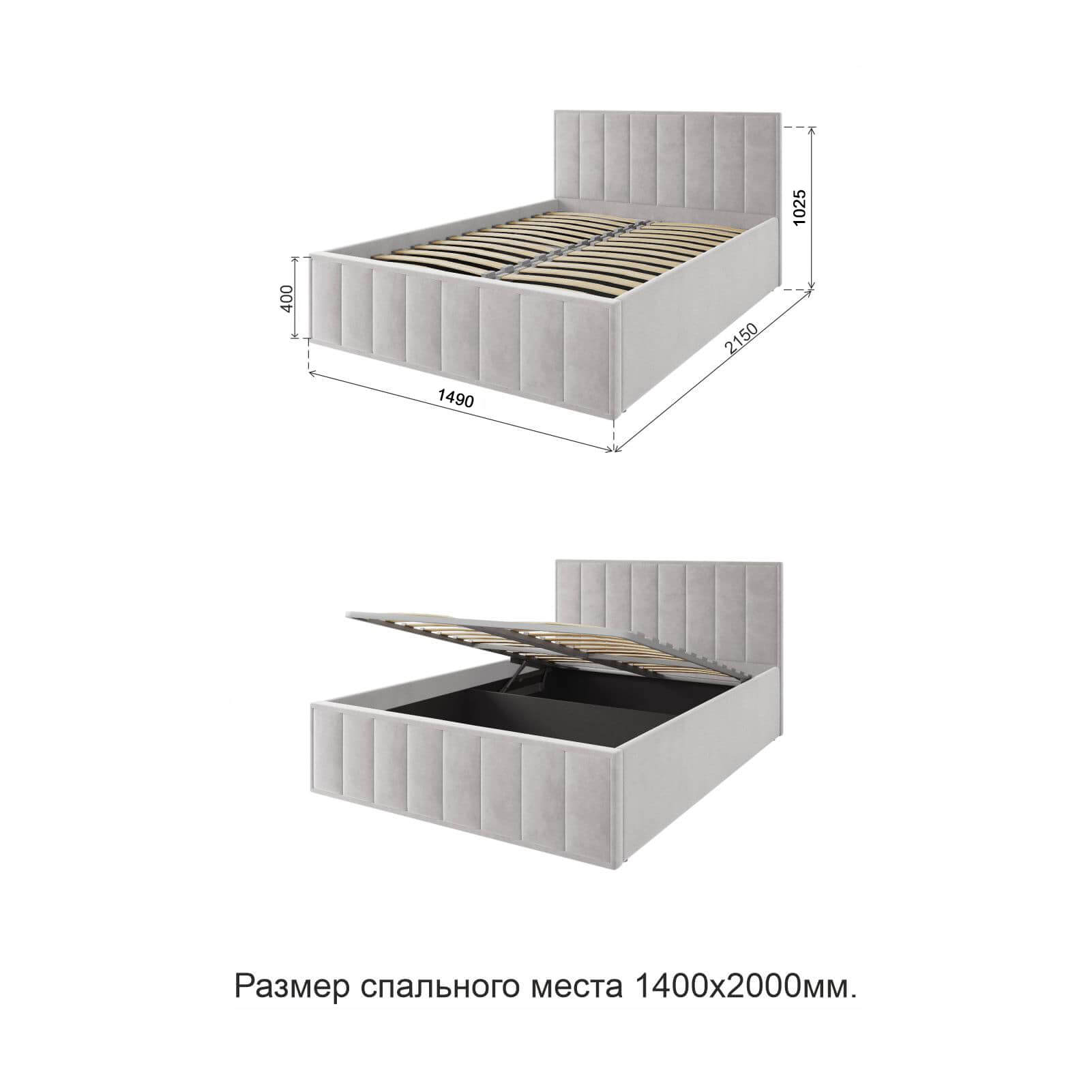 Кровать с подъемным механизмом Лана 1,4 Серый Софт