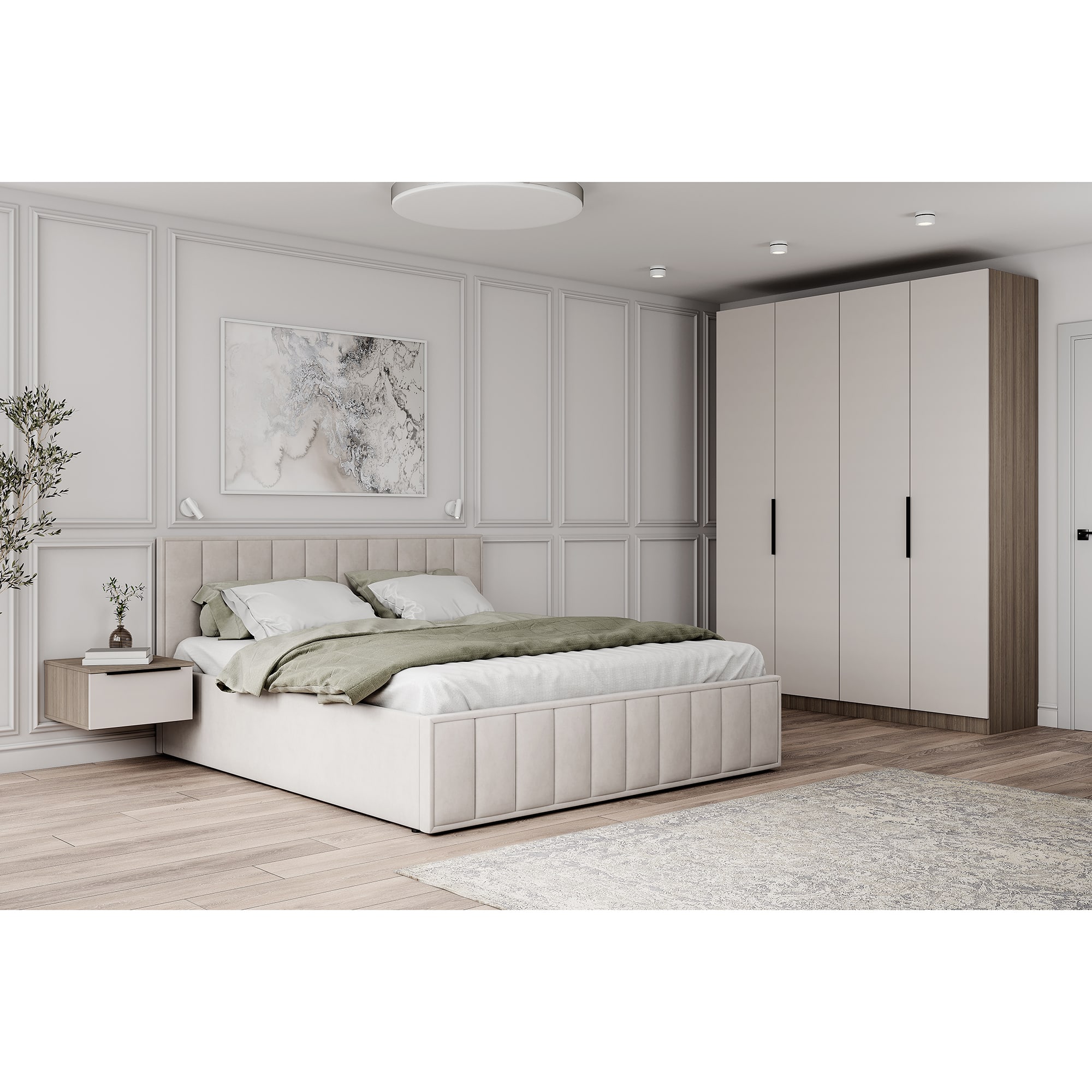 Ортопедическое основание. В комплектацию каждой кровати входит ортопедическое основание с подъемным механизмом, благодаря которому всегда доступны дополнительные зоны хранения.