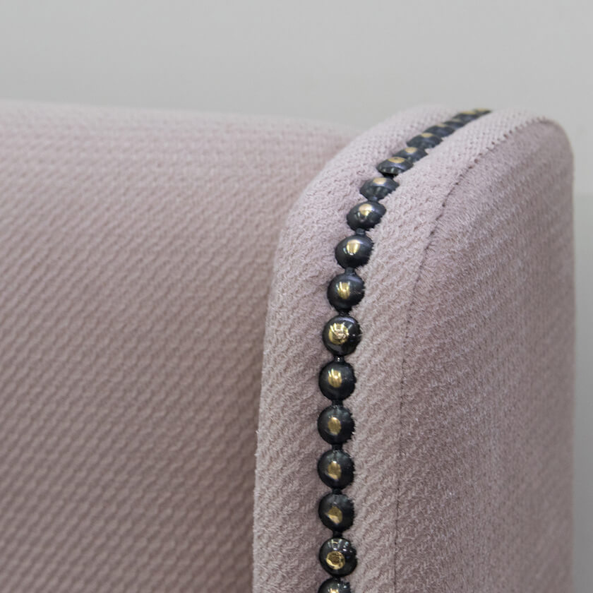 Актуальный дизайн интерьерной кровати МЕЛИССА – для истинных ценителей трендовых тенденций в мебельном дизайне. Изголовье кровати с боковыми накладками, декорированными мебельным молдингом-гвоздиками, создает атмосферу приватности, защищенности и комфорта.