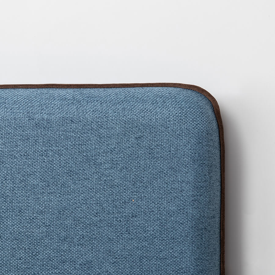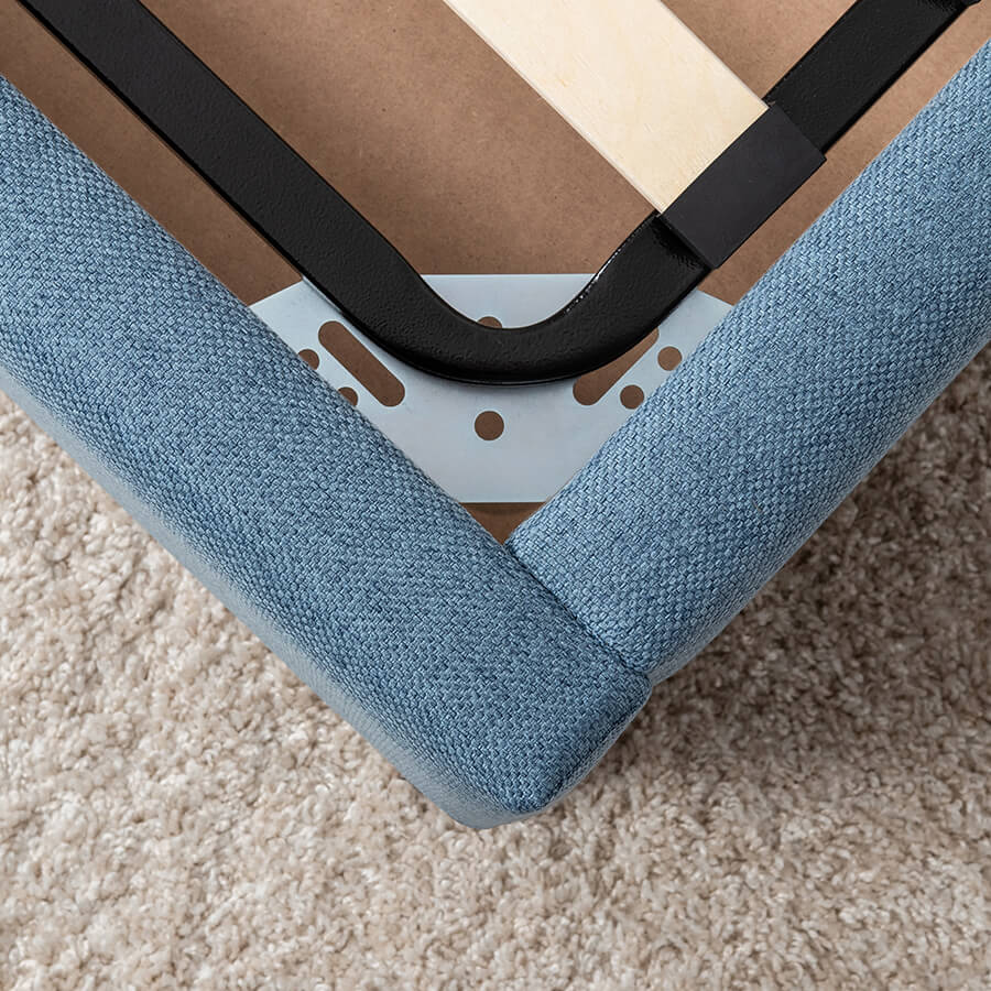 Основание кровати укомплектовано матрасодержателем. Жесткое кроватное дно из МДФ 6 мм. Задняя стенка изголовья выполнена в тех. ткани (спанбонд).