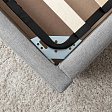 Основание кровати укомплектовано матрасодержателем. Жесткое кроватное дно из МДФ 6 мм. Задняя стенка изголовья выполнена в тех. ткани (спанбонд).