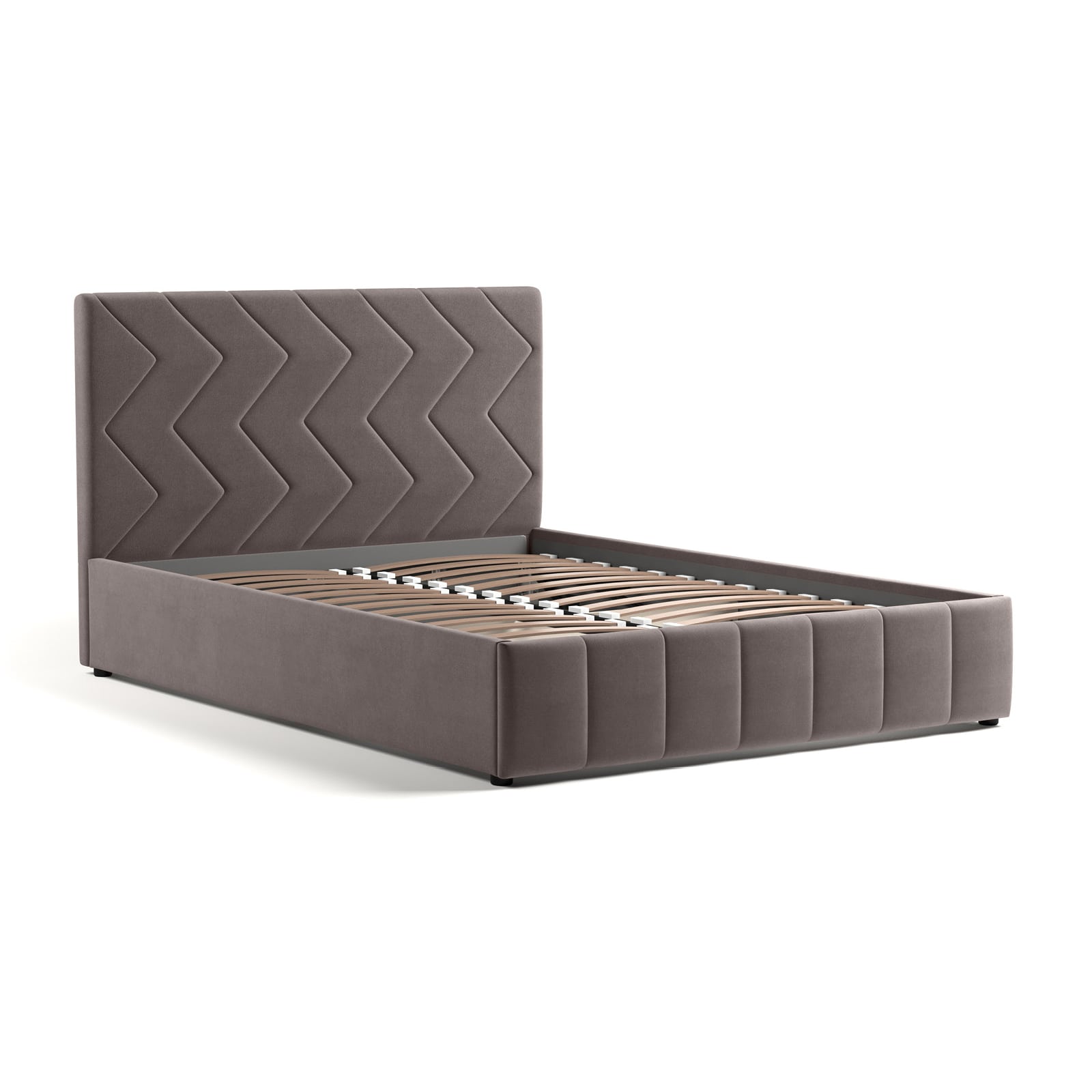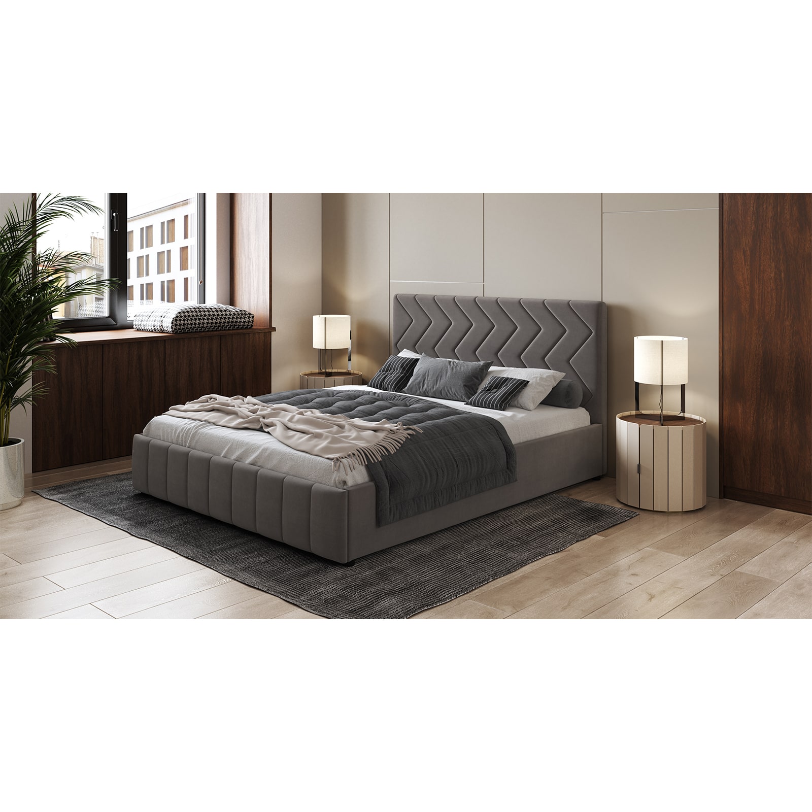 Интерьерная кровать МИЛАНА выполнена в благородном велюре, что подчеркивает объем и геометрию стежки.