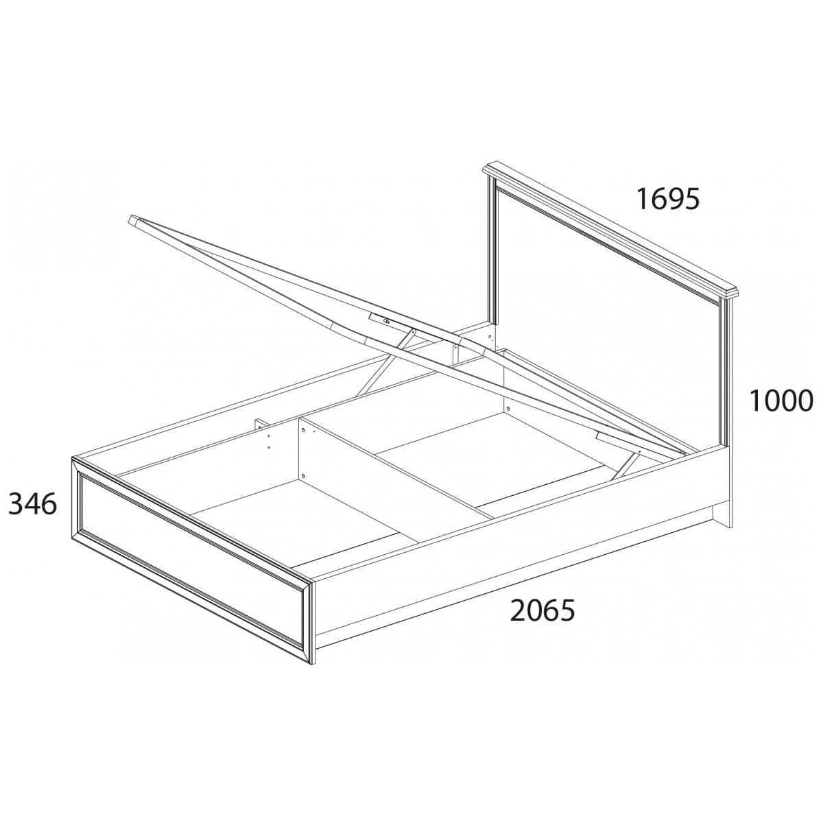 Кровать Монако 160 с подъёмным механизмом - двухспальная, размер спального места – 1600*2000 мм (ширина - 1695 мм, глубина - 2065 мм). Конструкция кровати представлена сплошным изголовьем прямоугольной формы (с пилястрами, декоративной короной) и изножьем прямоугольной формы (обрамлённое патинированными планками из МДФ), царгами и металлическим основанием с подъёмным механизмом, большими удобными ящиками для хранения вещей, белья и предметов быта. Деревянные ламели служат дополнительной амортизирующей основой.