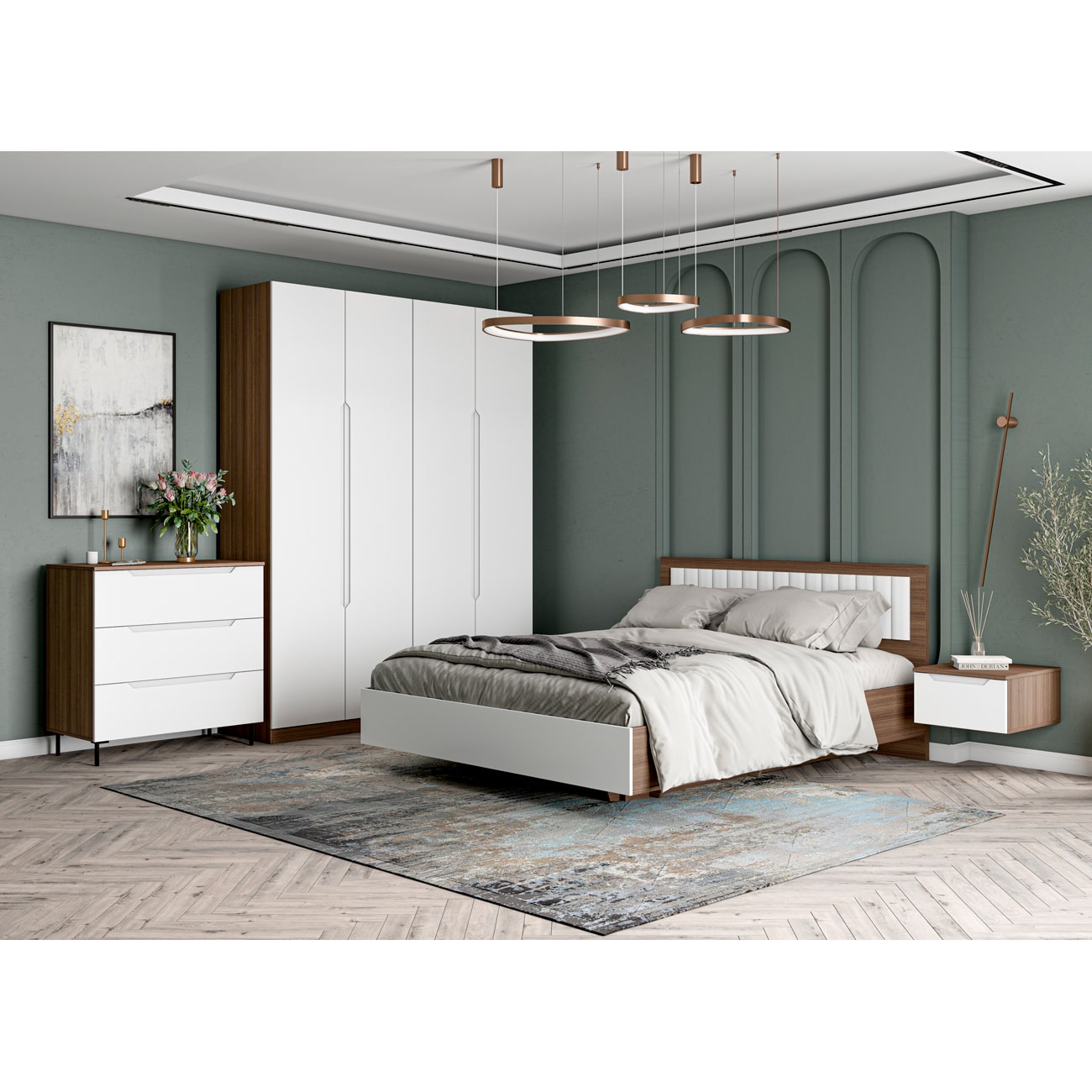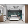 Изголовье кровати выполнено из расширенной ЛДСП плиты толщиной 32 мм. с МДФ вставкой, которая придает ей элегантный внешний вид.