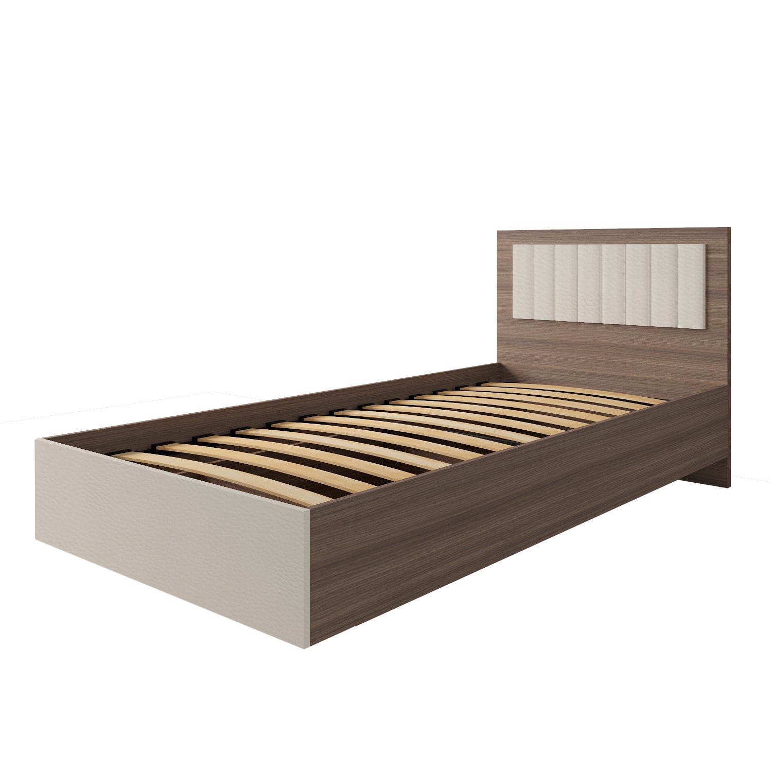 Изголовье кровати выполнено из расширенной ЛДСП плиты толщиной 32 мм. и МДФ вставки, что придает конструкции особый шарм.
