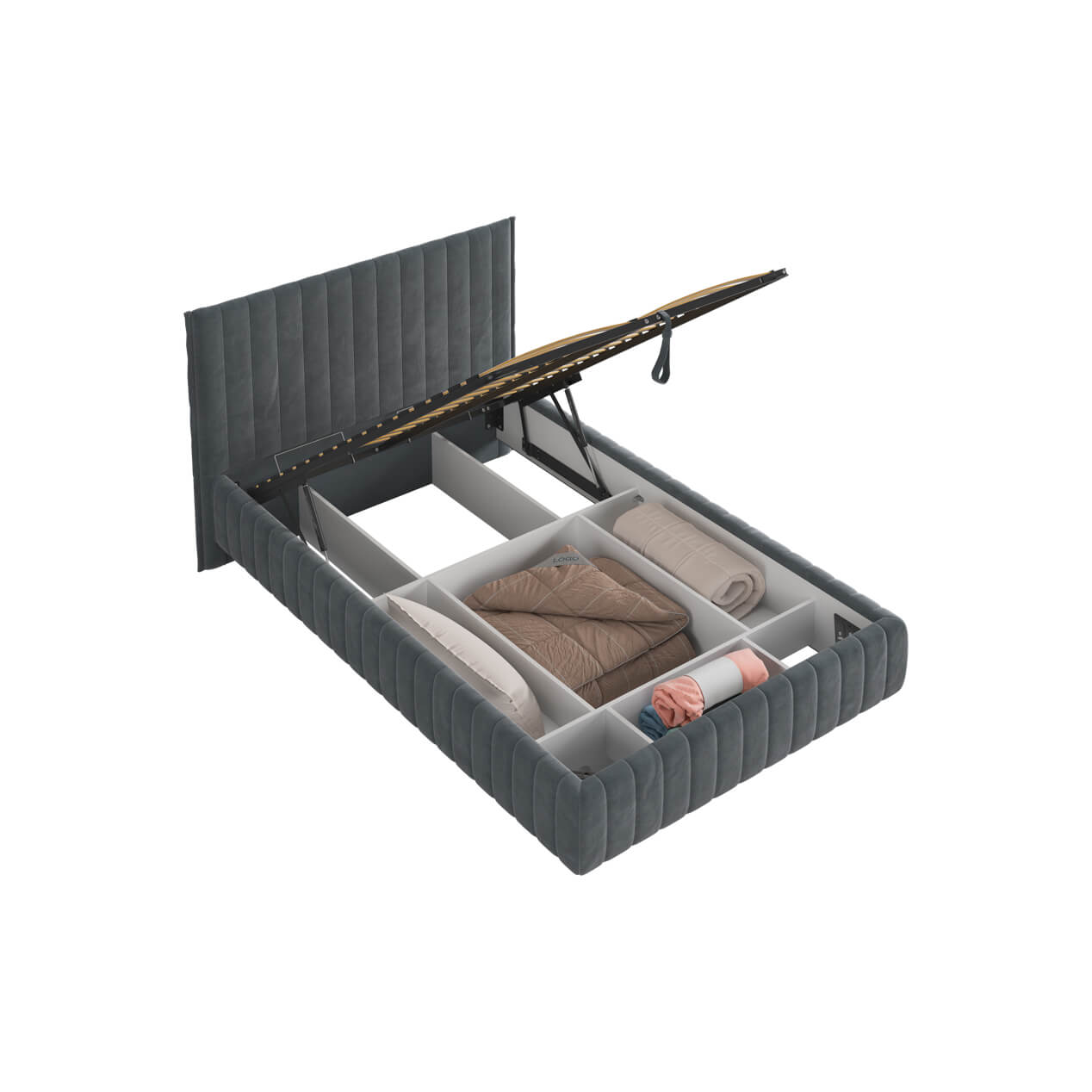 Подъемное основание сделает ваш сон здоровым и крепким, а также благодаря ему под кроватью будет располагаться ящик для хранения вещей, которые будут всегда под рукой.