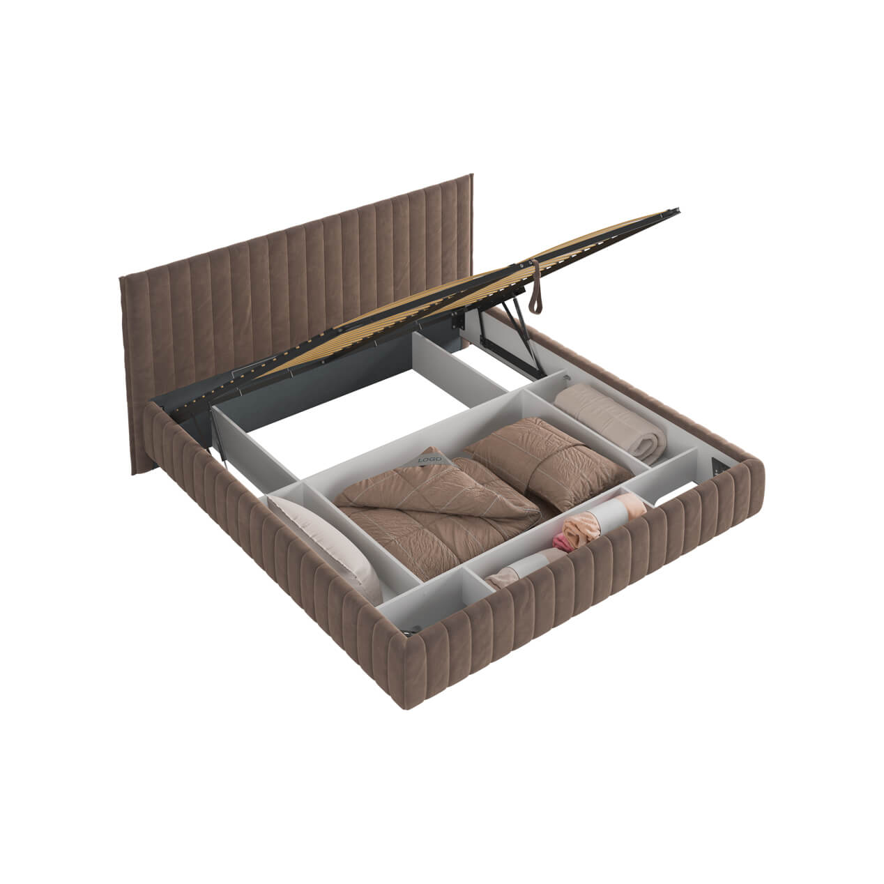Подъемное основание сделает ваш сон здоровым и крепким, а также благодаря ему под кроватью будет располагаться ящик для хранения вещей, которые будут всегда под рукой.