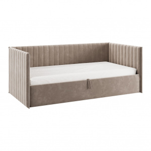 Изготовленная из качественного ДСП толщиной 16 мм, эта кровать отличается прочностью и долговечностью. Обивка из велюра, в сочетании с современным пенополиуретаном (ППУ), придает изделию изысканный вид и приятные тактильные ощущения.