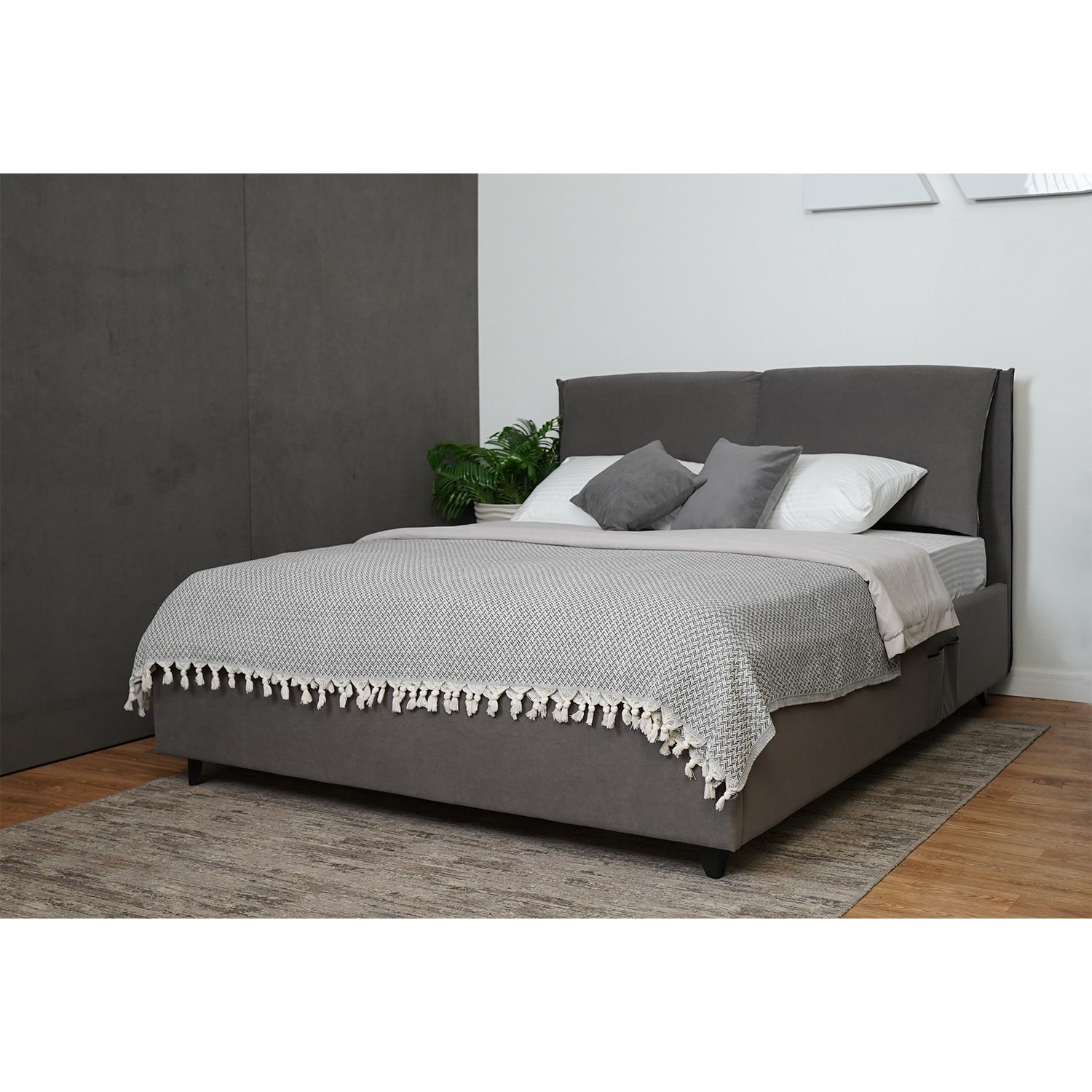 Кровать доступна в трех модных цветах и выполнена из высококачественной рогожки с антивандальными свойствами, что обеспечивает долговечность и надежность. Внутренняя обивка из спандбонда делает мебель устойчива к износу, не впитывает влагу, гарантируя долгий срок службы.