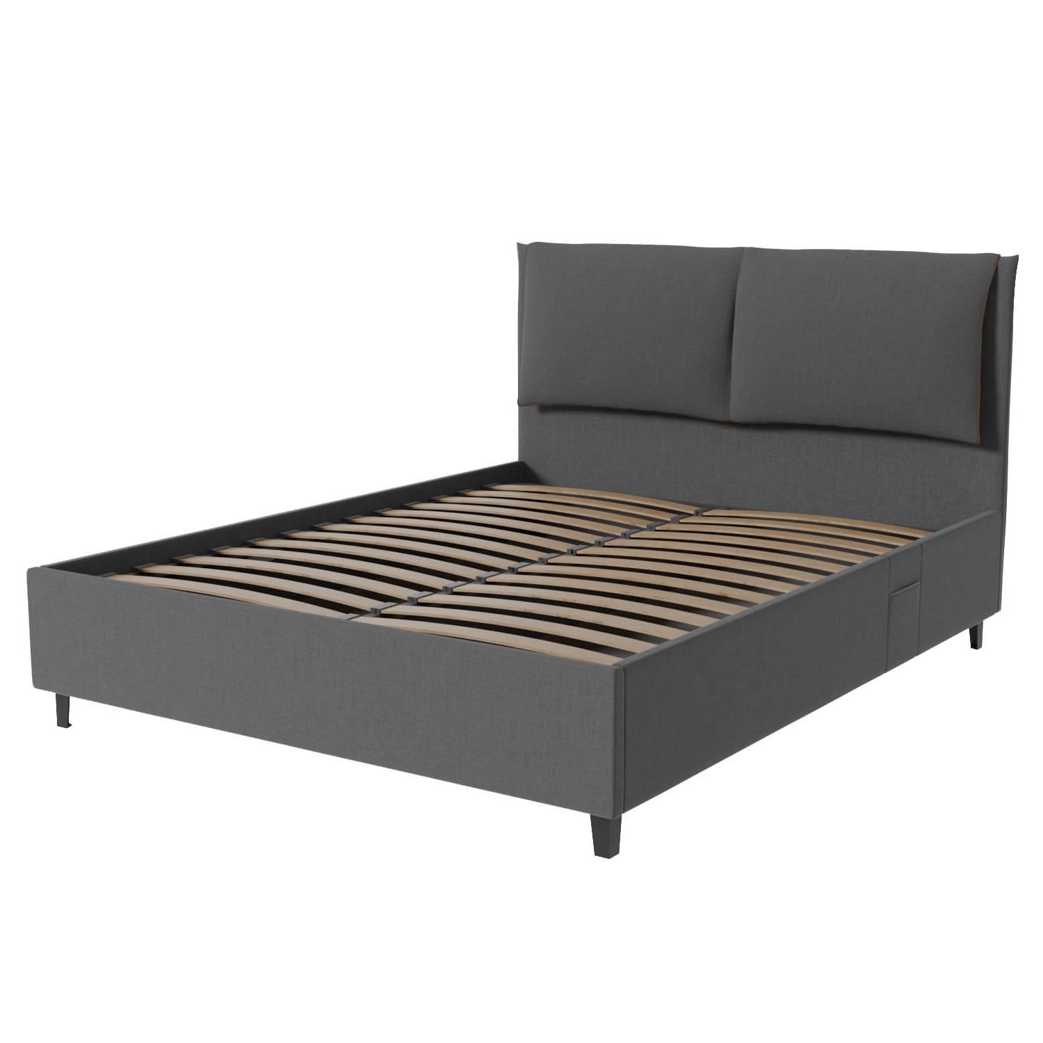 Встроенные карманы в боковины кровати и изящное изголовье создают дополнительный комфорт и практичность, позволяя хранить под рукой все необходимое современному человеку. Элегантное изголовье в сочетании с четкими линиями каркаса придают мебели современный и минималистичный вид.