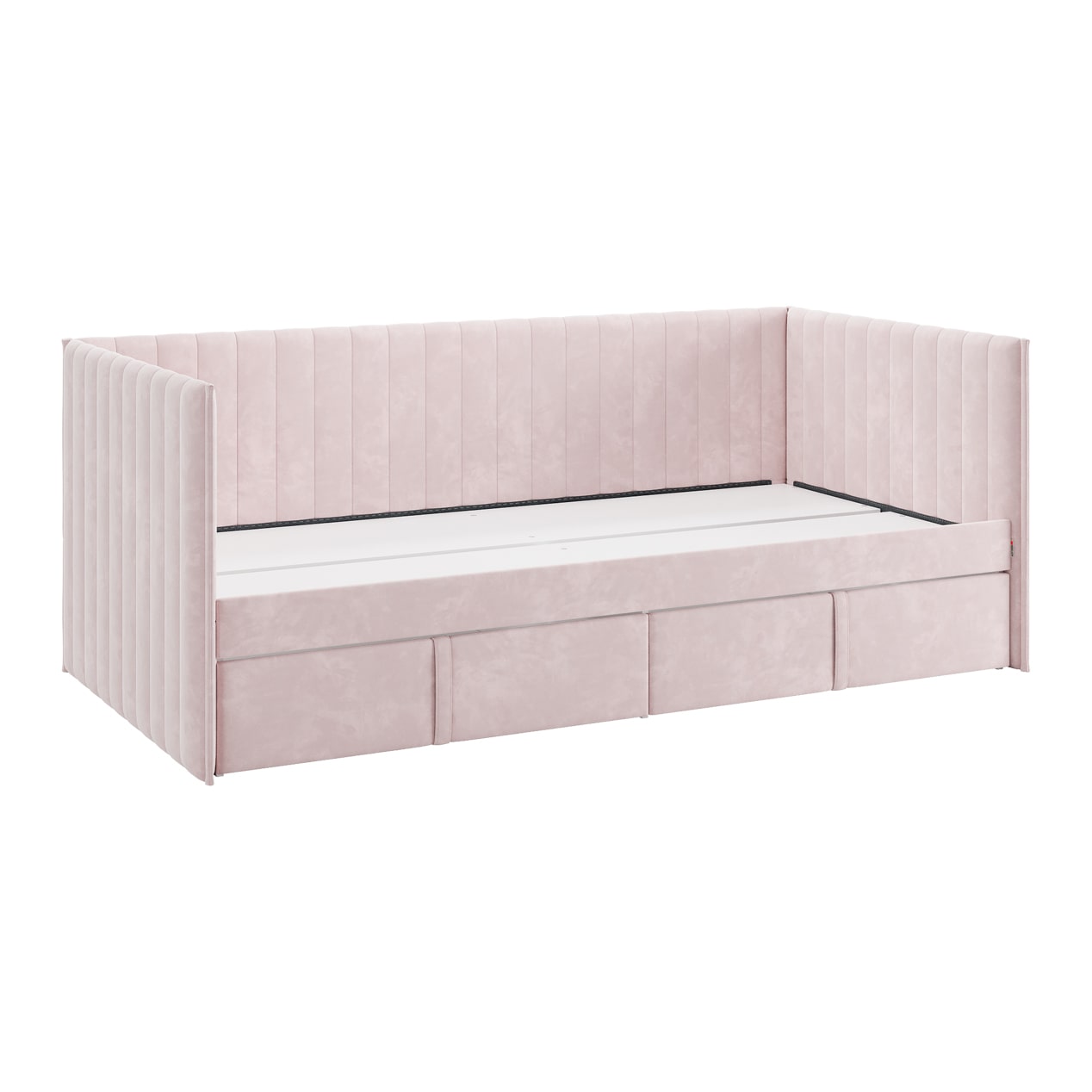Кровать с ящиками Твикс (Софа) 90х200 см – это идеальное решение для компактного и функционального обустройства спальни или детской комнаты. Изготовленная из высококачественных материалов, таких как ДСП толщиной 16 мм, мягкого наполнителя и велюра, она сочетает в себе современный дизайн и практичность.