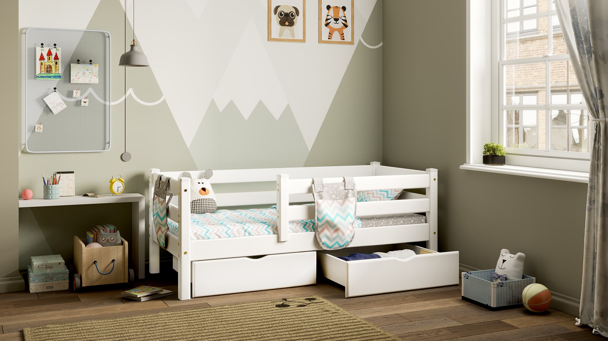 С помощью выкатного ящика Соня можно расширить функционал детской кровати и с максимальной пользой задействовать пространство комнаты. В модуле, оснащенном роликами, удобно хранить запасное покрывало или подушку.