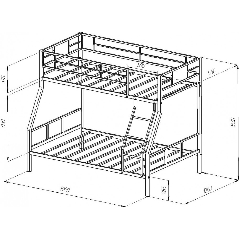 Металлическая двухъярусная кровать Гранада-1 способна выдерживать нагрузку до 80 кг (на одно спальное место), что делает ее подходящей как для детей, так и для взрослых. Конструкция кровати предусматривает спальные места разных размеров. В отличие от кроватей из ЛДСП выглядит менее громоздкой.В комплект входит прочная лестница, которую по Вашему желанию можно установить справа или слева.