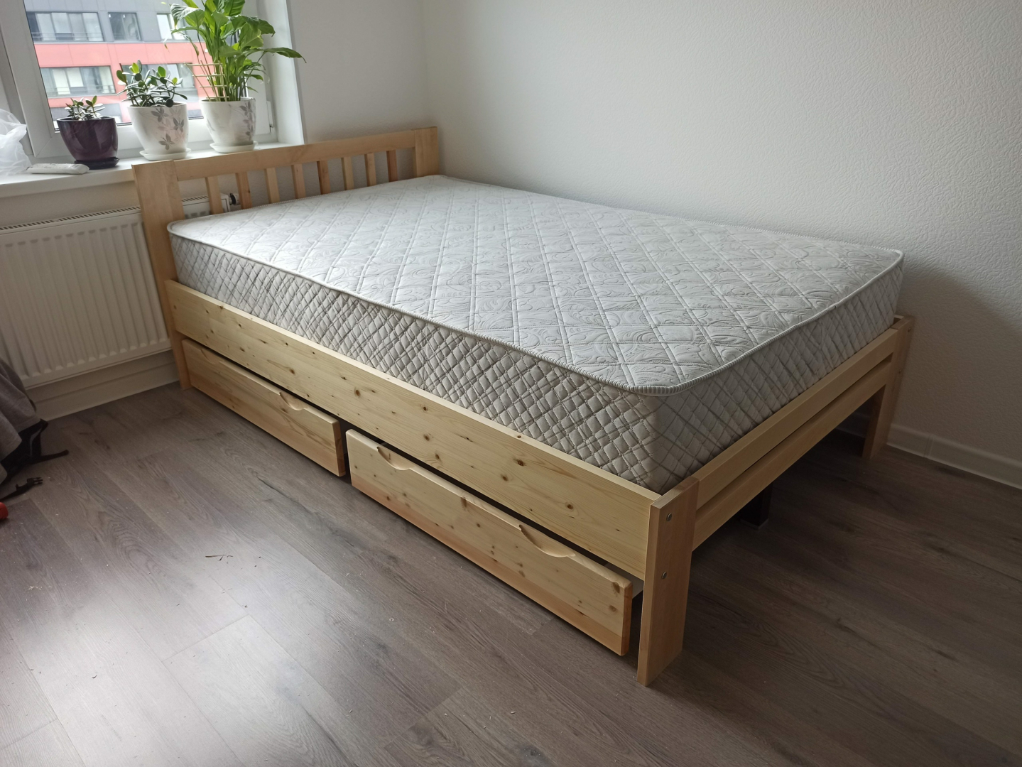 Кровать оснащена реечным основанием (брусом), что обеспечивает комфорт и поддержку для вашего тела во время сна. Максимальная нагрузка на кровать составляет 90 кг.