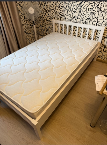 В комплектацию кровати входит каркас и реечное основание (брус).