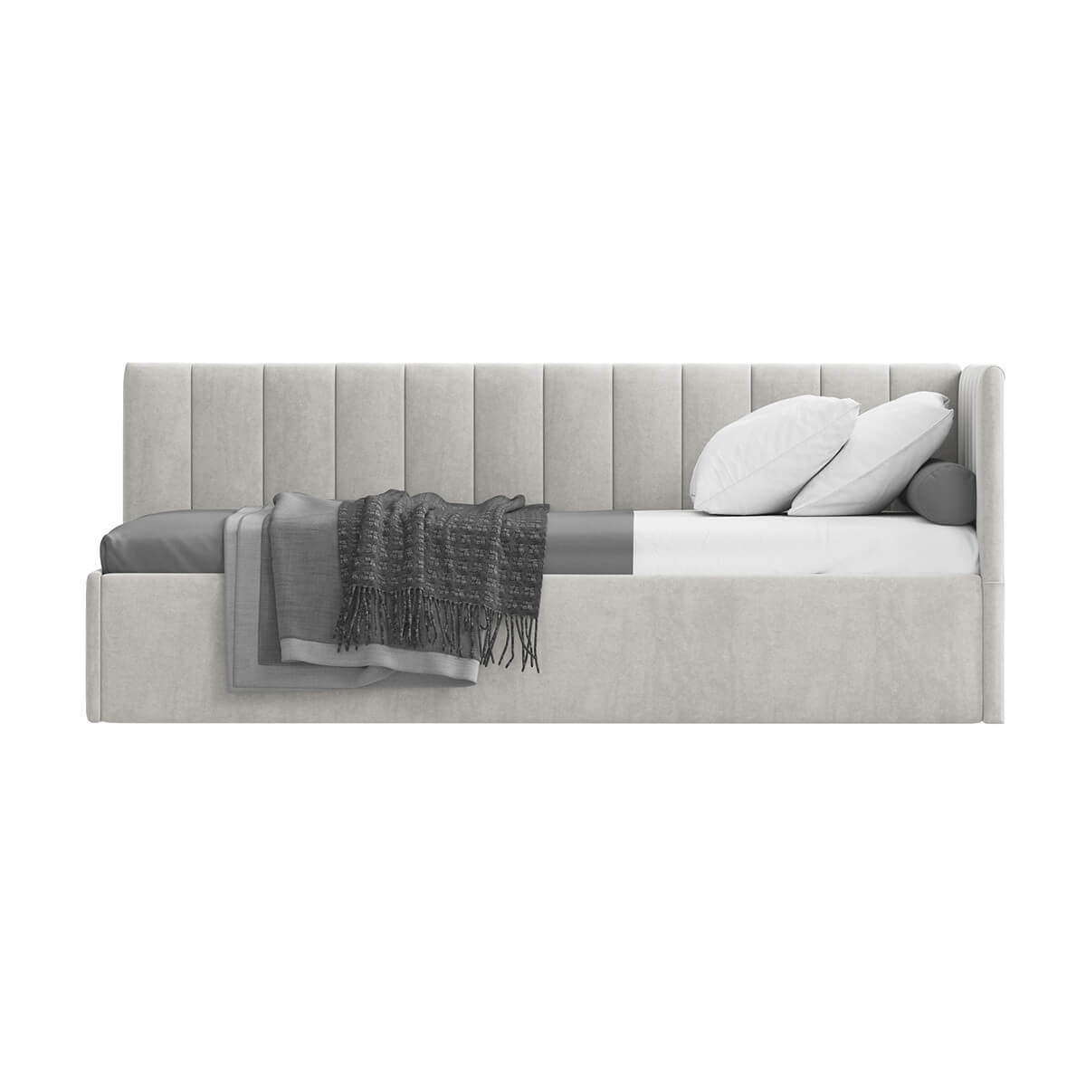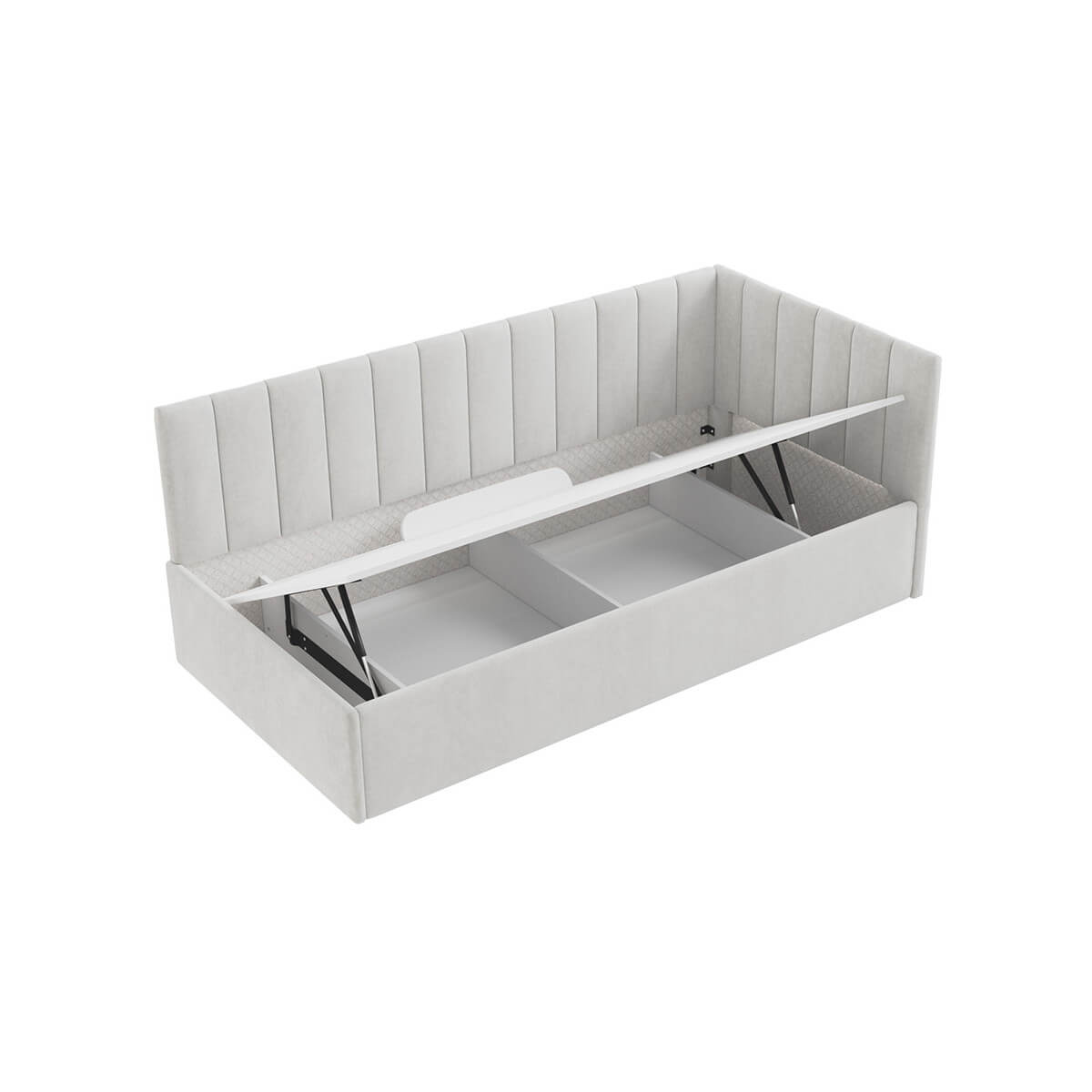 Кровать SINGLE 90 с ПМ в цвете Simple 29. Идеальный вариант для создания уютного и приятного интерьера. Кровать односпальная, размер спального места – 900х2000 мм. Конструкция кровати угловая, представляет изголовье и боковину, основание ЛДСП с подъёмным механизмом, большой вместительные короб для хранения вещей, белья и предметов быта. Особенностью модели является возможность установить её на левую или правую сторону – универсальный угол, наличие подъёмного механизма, мягкий корпус. Данная кровать служит по своему прямому назначению – для сна, а также, как место для отдыха, работы за ноутбуком в положении сидя.