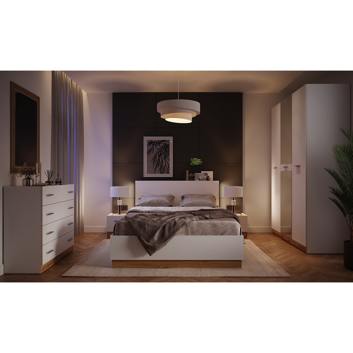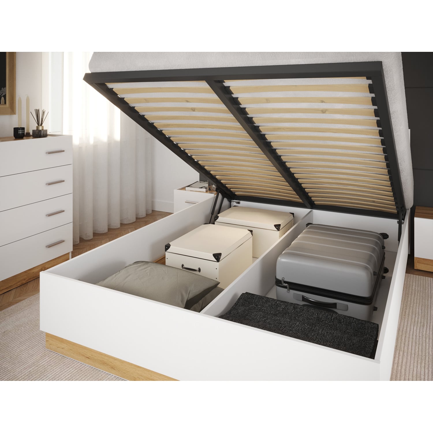 1. Кровать с подъемным механизмом НК FRESCO 1600х2000 Белый/Дуб Вотан (1646x2186x923 мм)