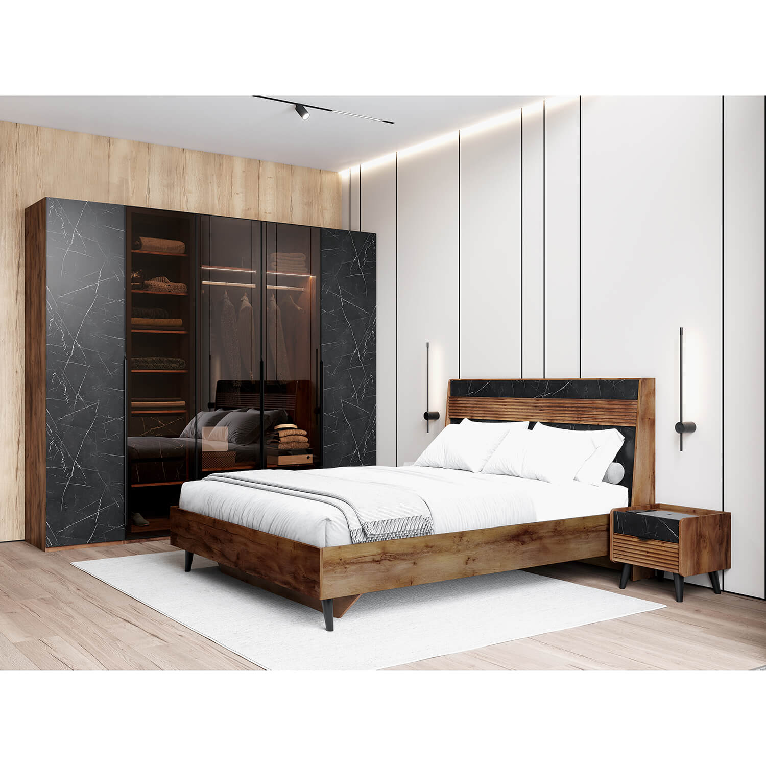Серия мебели для спальни “Браун” в цвете Таксония/Мрамор неро маркина представляет собой элегантное и стильное решение для создания уютной атмосферы в вашей спальне. Мрамор придает мебели изысканный и роскошный вид, а Таксония добавляет теплые нотки и создает гармоничное сочетание с черным цветом.
