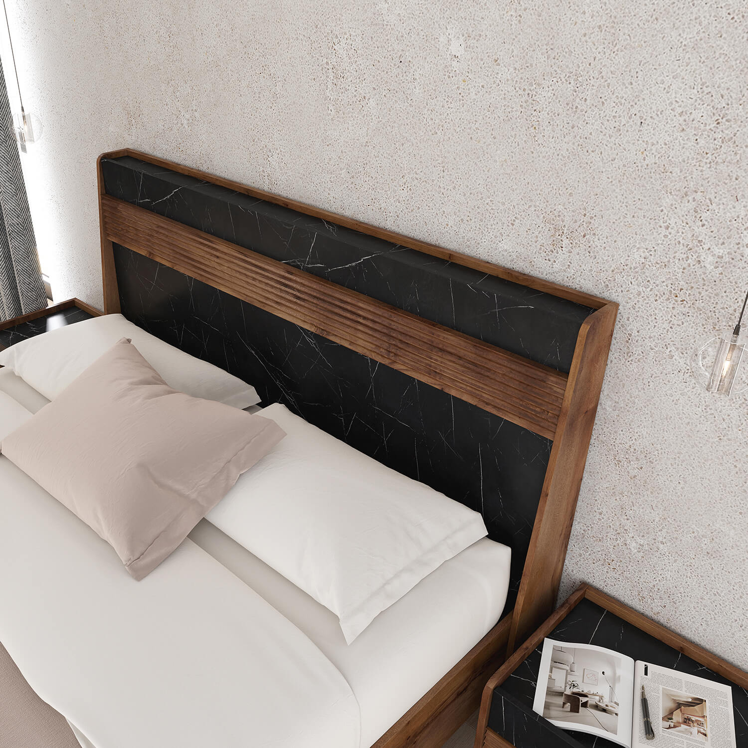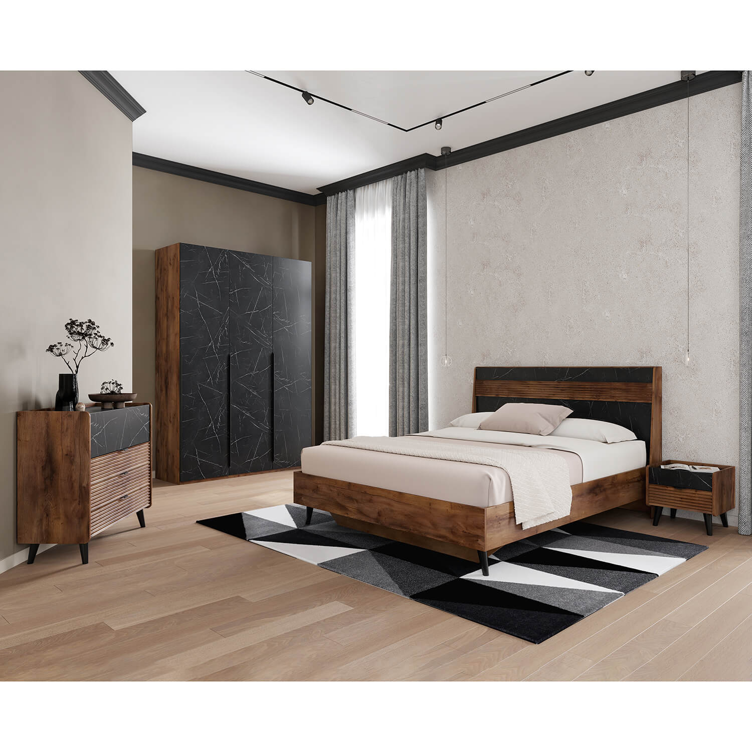Серия мебели для спальни “Браун” в цвете Таксония/Мрамор неро маркина представляет собой элегантное и стильное решение для создания уютной атмосферы в вашей спальне. Мрамор придает мебели изысканный и роскошный вид, а Таксония добавляет теплые нотки и создает гармоничное сочетание с черным цветом.