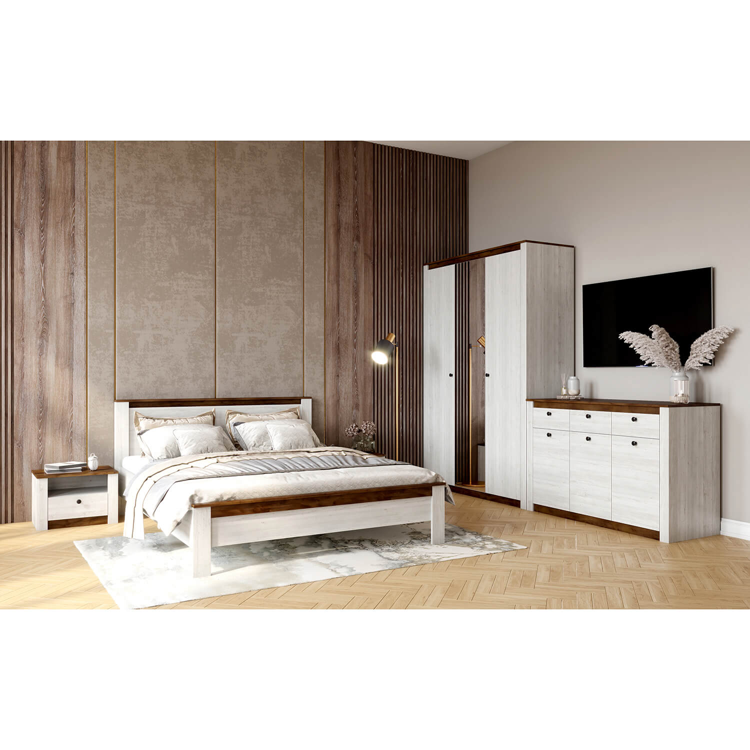 Этот комплект мебели для спальни идеально подойдет для создания гармоничного и стильного пространства, где вы сможете расслабиться и отдохнуть после насыщенного дня.
