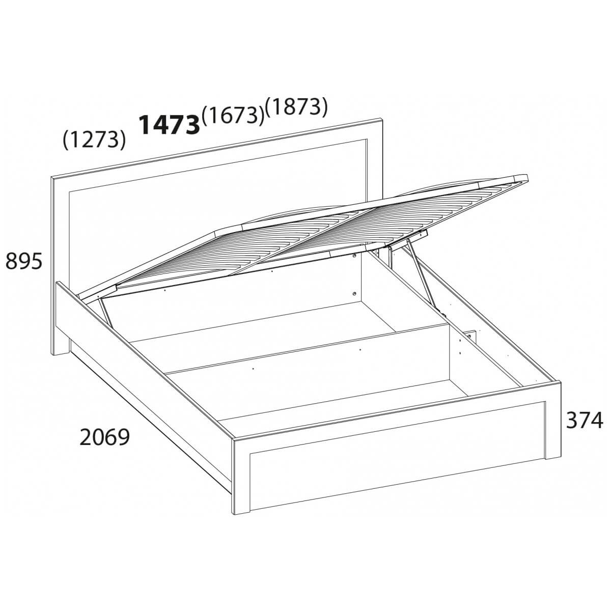 3. Кровать с подъемным механизмом DOORSET 140 Дуб наварра 1473x2069x895 мм