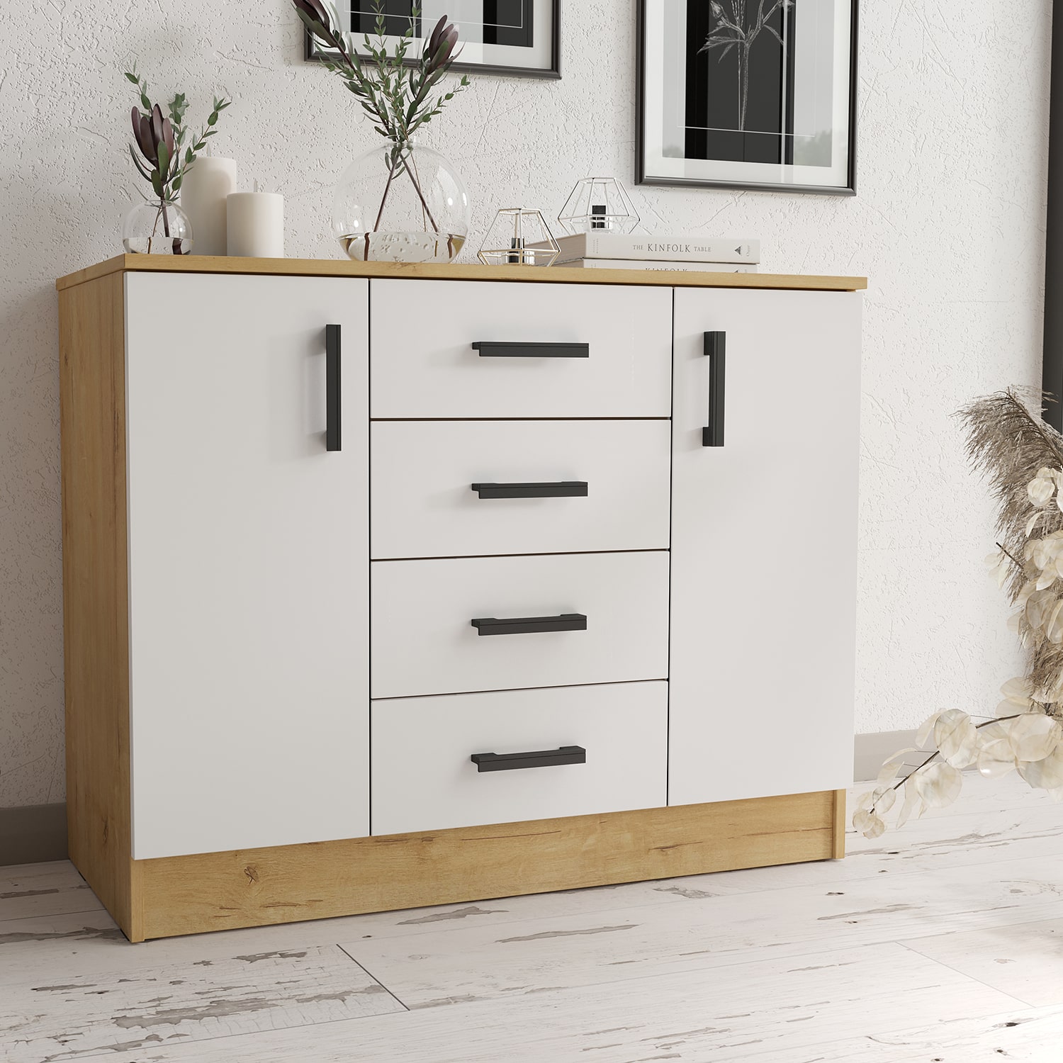 5. Комод К 1000-2Д Дуб Вотан-Белый гладкий (1000x440x830 мм)
