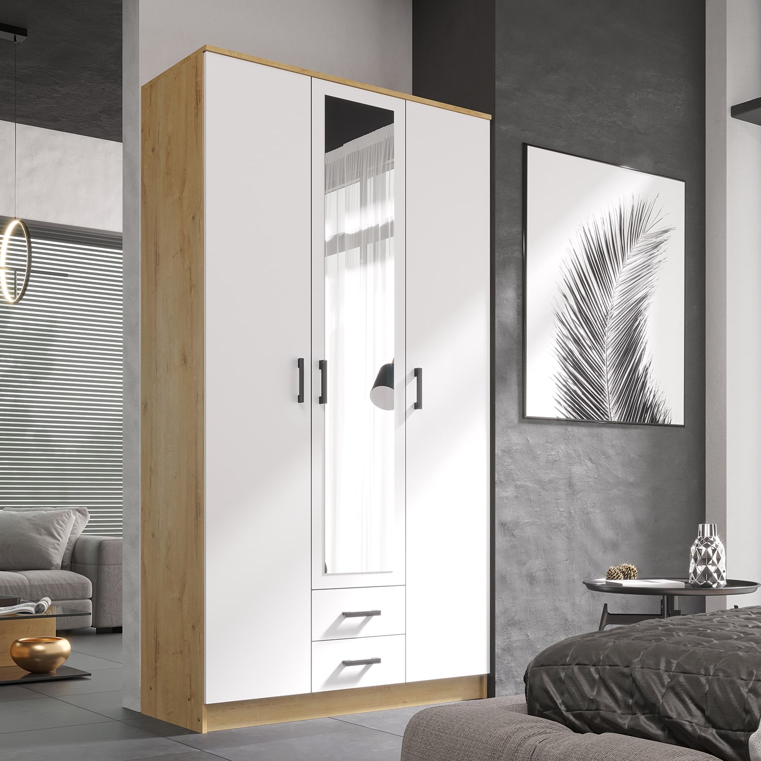 1. Шкаф Трио Дуб Вотан-Белый гладкий (1200x487x2200 мм)