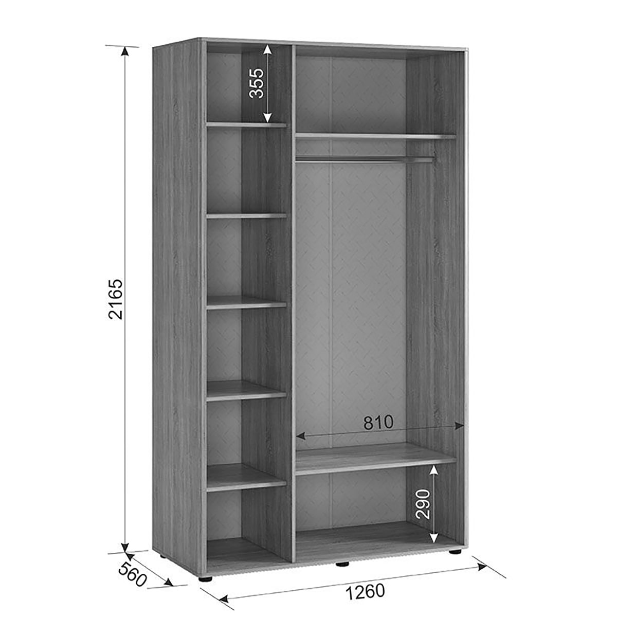 В состав комплекта входит: Шкаф 3-створчатый Зара 1 шт 1260x560x2170 мм Туалетный столик Зара - 1 шт 800x430x1550 мм Тумба прикроватная Зара - 1шт 450x400x390 мм Кровать 1.4 Зара Люкс 1 шт 1502x2074x1005 мм