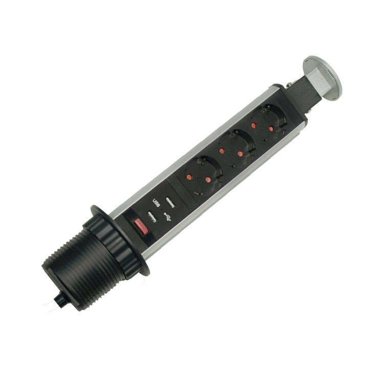 Блок розеток выдвижной вертикальный (Push Open) 3EURO 3,5кВт.+ 2USBх2.1A, шнур 1,8м, (вырез 60мм), IP20,