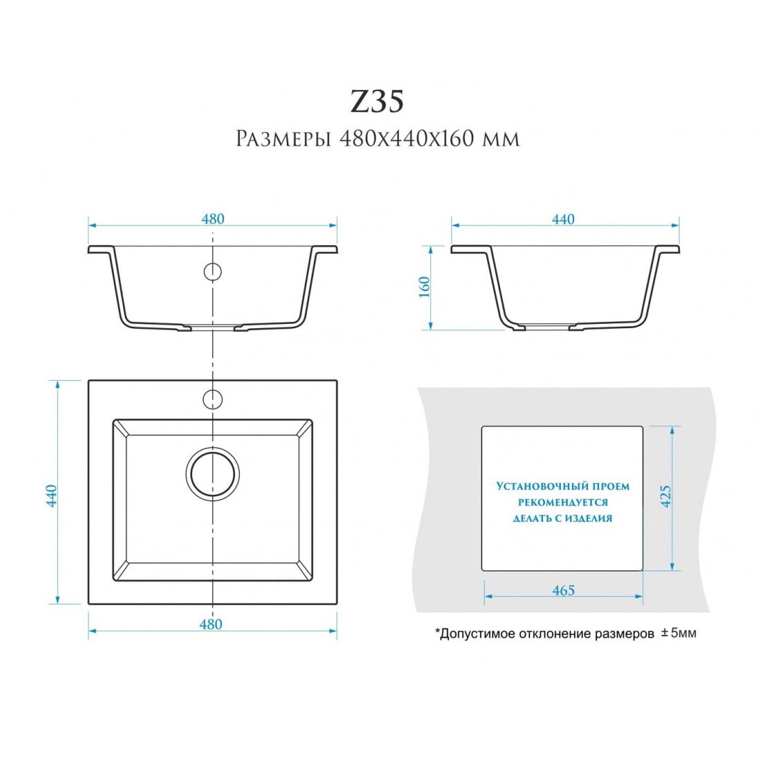 глубина - 160 мм