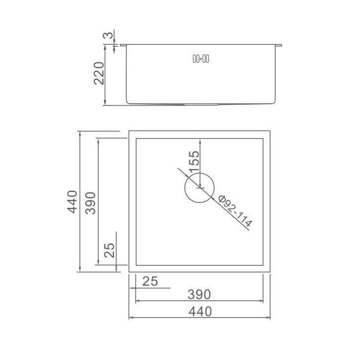 Мойка врезная нерж. 44х44 AFLORN, толщина 3,0 мм, цвет Сатин, с сифоном.