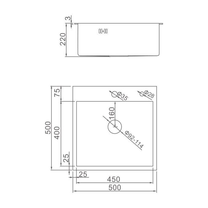 Мойка врезная нерж. 50х50 AFLORN, толщина 3,0 мм, цвет ГРАФИТ, с сифоном.