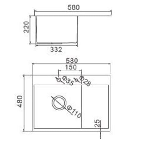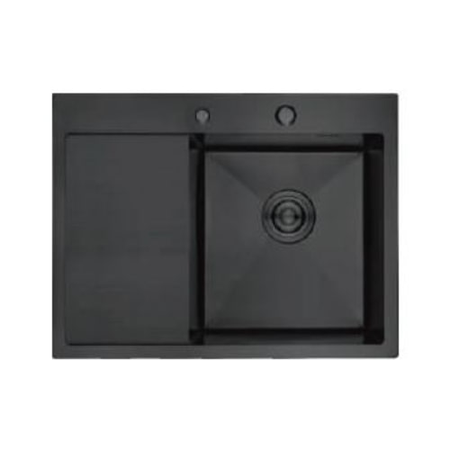 Мойка врезная нерж. 58х48 ПРАВАЯ AFLORN, толщина 3,0 мм, цвет ГРАФИТ, с сифоном