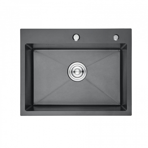 Мойка врезная нерж. 60х45 AFLORN, толщина 3,0 мм, цвет Графит, с сифоном.