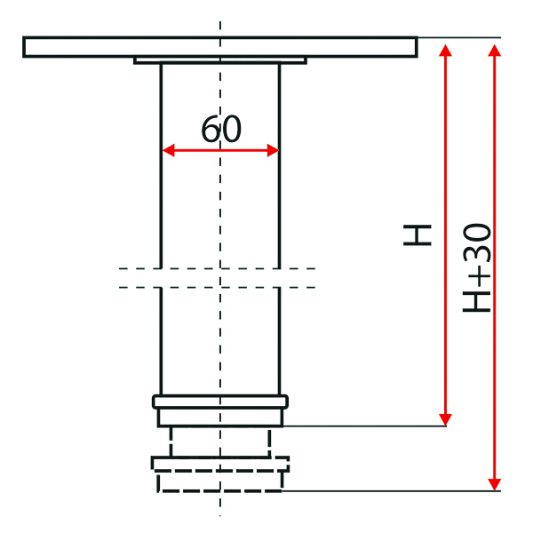 Ножка мебельная, 1100-1130х60мм, матовый хром SET1154 (111045+119440)