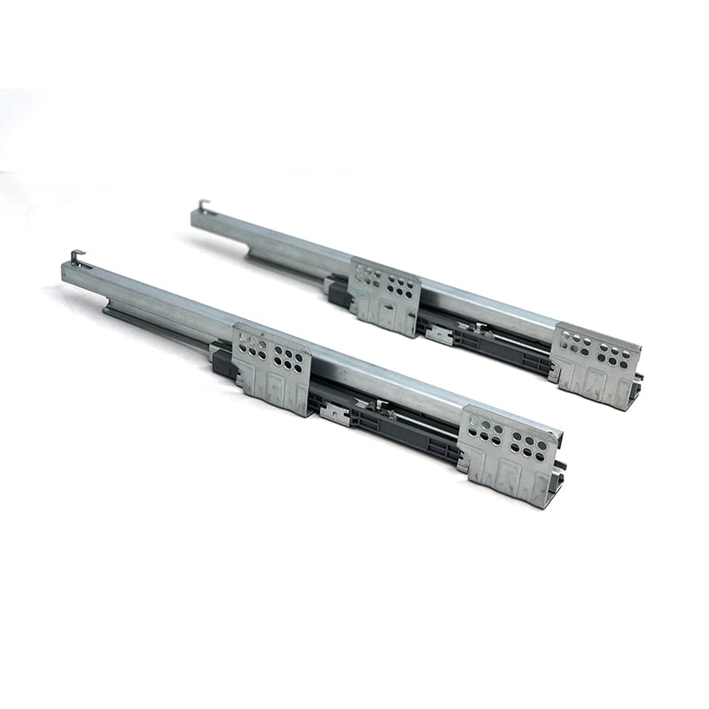 Направляющие скрытого монтажа полного выдвижения с амортизацией оснащены современным механизмом доводчика. Это обеспечивает плавный ход бутылочницы. Модель обеспечит удобный полный доступ к продуктам и жидкостям.