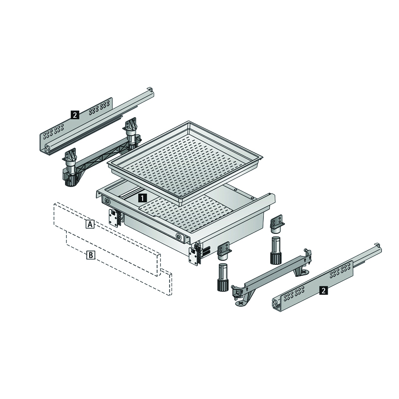 Механизм подъема цоколя обеспечивает плавное, аккуратное выдвижение и защиту пола от царапин