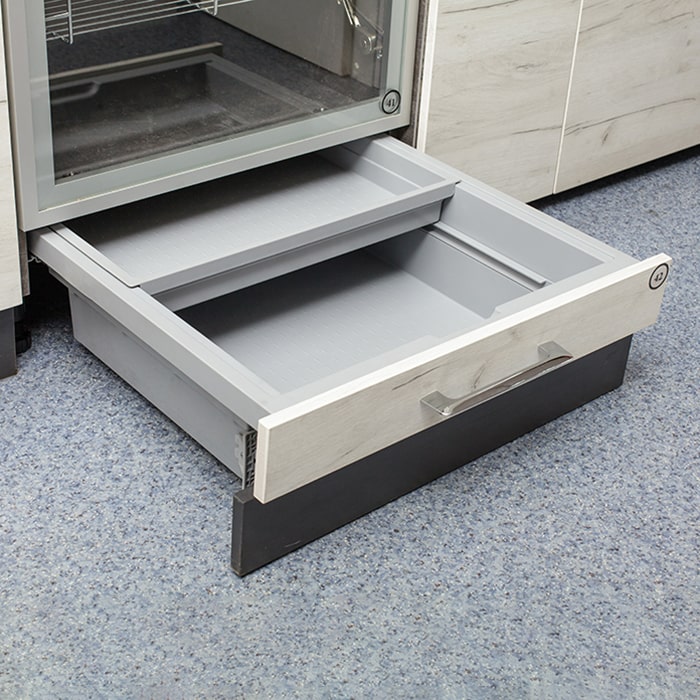 Для эффективного использования пространства за цоколем под духовым шкафом