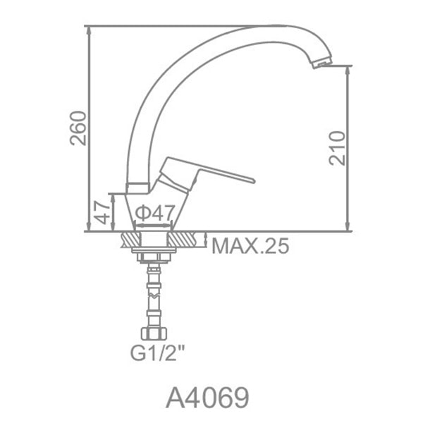 Смеситель для кухни с гайкой(утка) 35. (Комлектуется подводкой для воды). Высокое качество хром-никелевого покрытия. Материал: силумин.