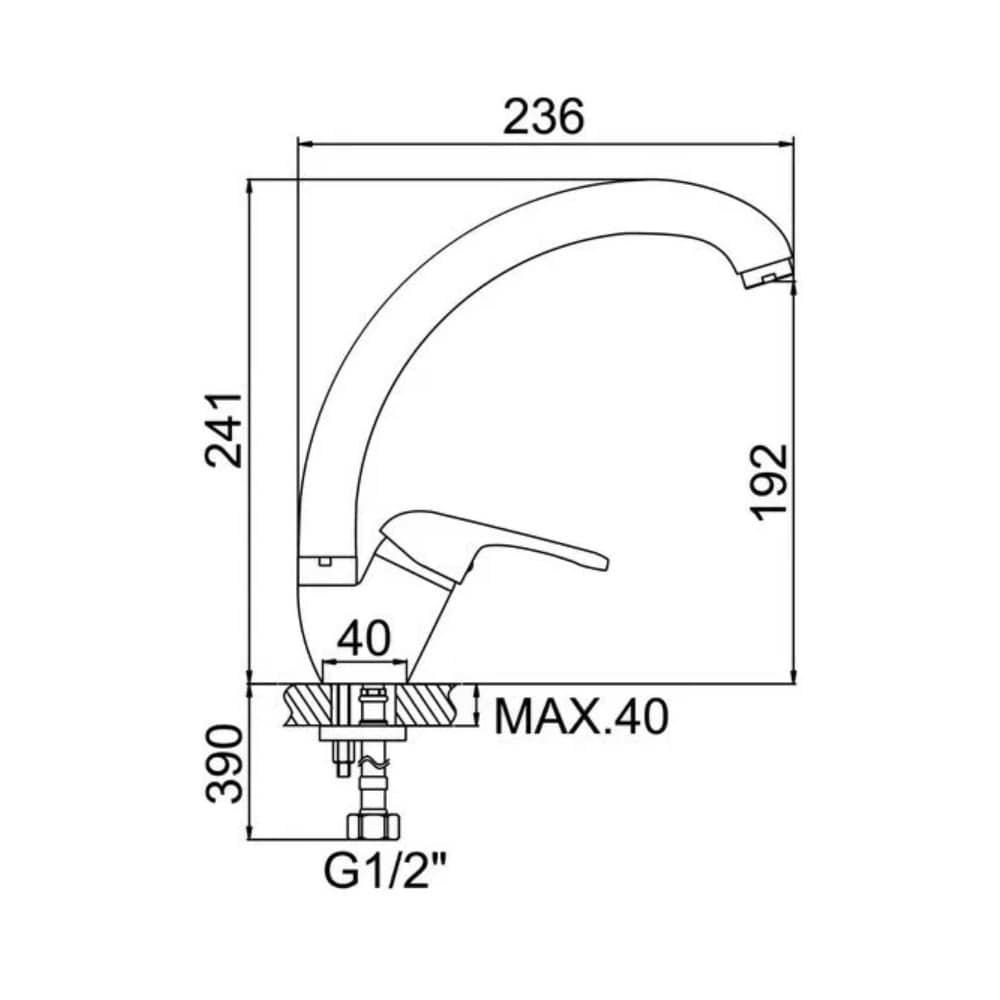 Смеситель для кухни,однорычажный, хром. Керамический картридж d35. (Комлектуется подводкой для воды). Материал: симулин.