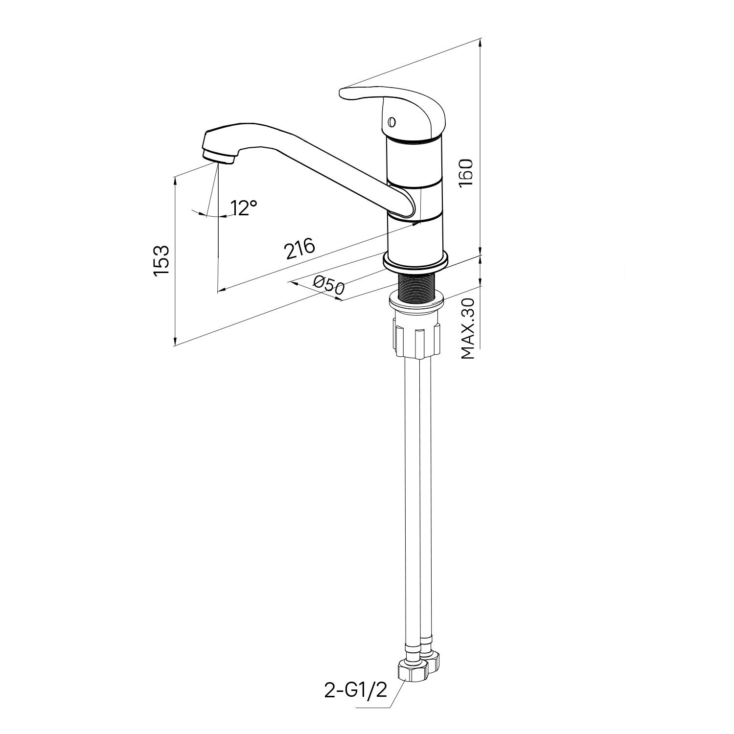 Смеситель для кухни, однозахватный, латунь, никель-хромовое покрытие, цвет - черный матовый, керамический картридж 35 мм, пластиковый аэратор. В комлекте: гибкая подводка, крепёж. Упаковка: коробка, микрогофрокартон, индивид. мешок.