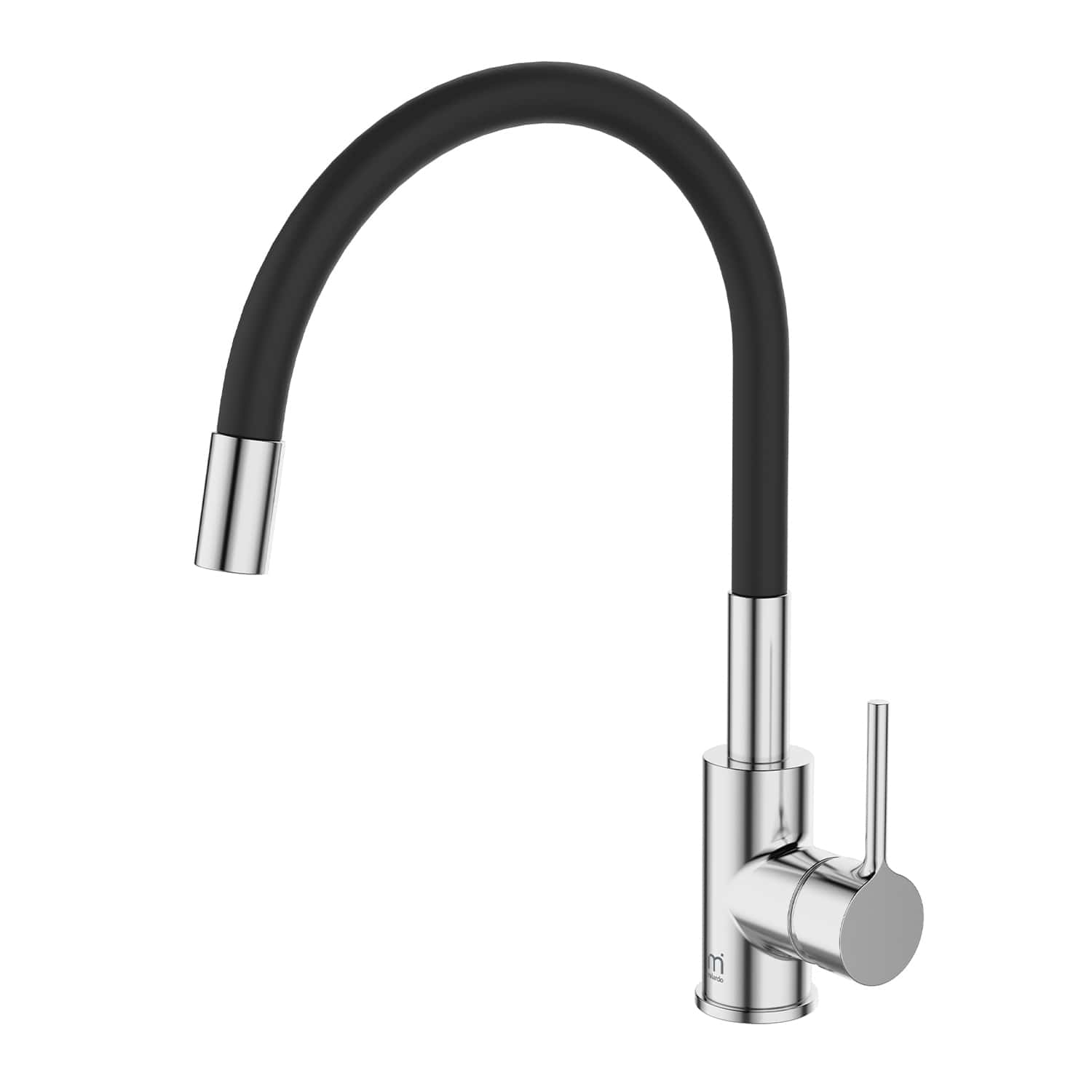 Смеситель для кухни с гибким изливом, однозахватный, латунь, цинк, силикон, никель-хромовое покрытие, цвет - хром, керамический картридж 35 мм, пластиковый аэратор. В комлекте: гибкая подводка, крепёж. Упаковка: коробка, микрогофрокартон, индивид. мешок.
