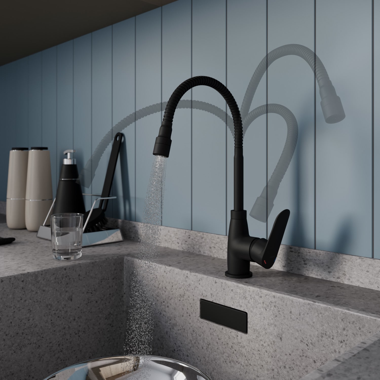 Смеситель для кухни с гибким изливом и душевой двухрежимной насадкой, однозахватный, латунь, электрофоретическое покрытие, керамический картридж 35 мм. В комлекте: гибкая подводка, крепёж. Упаковка: коробка, микрогофрокартон, индивид. мешок.