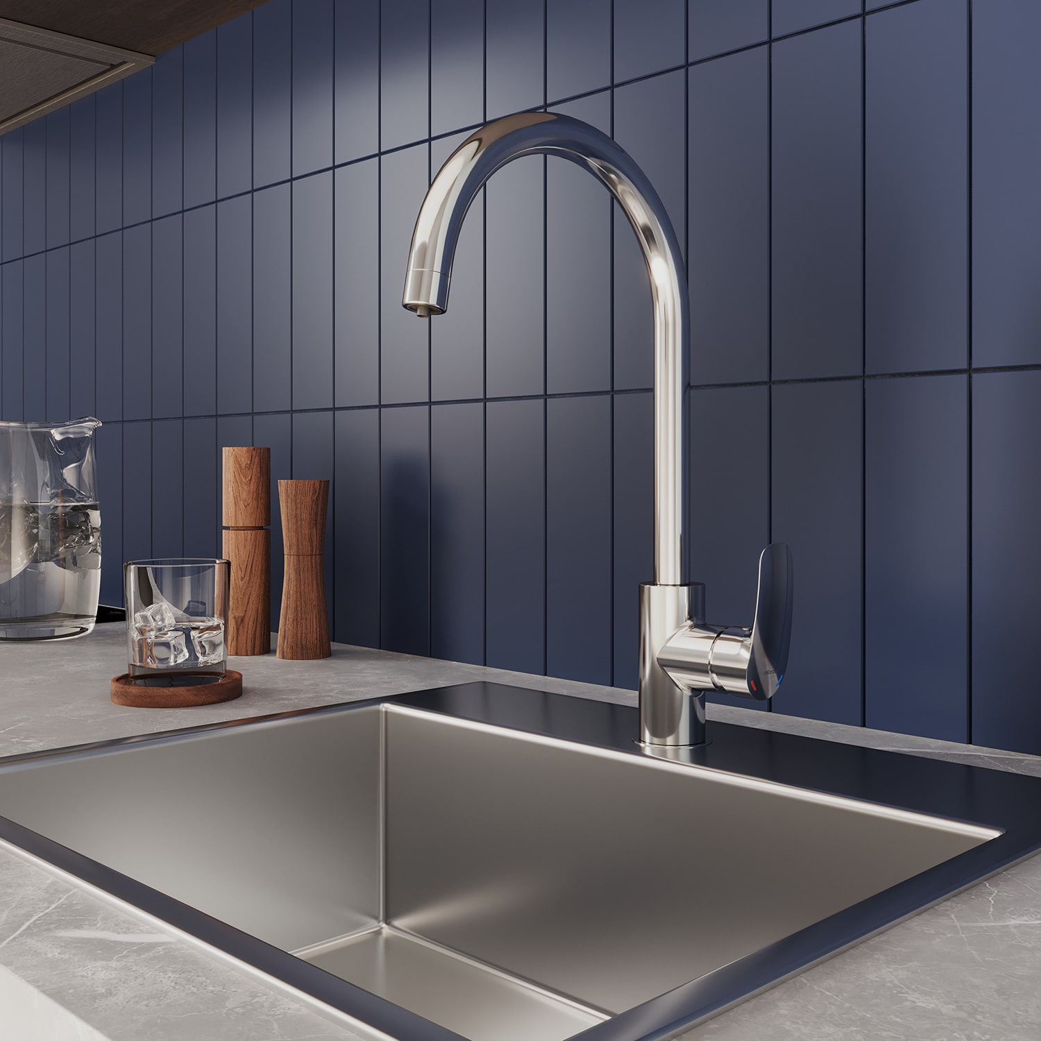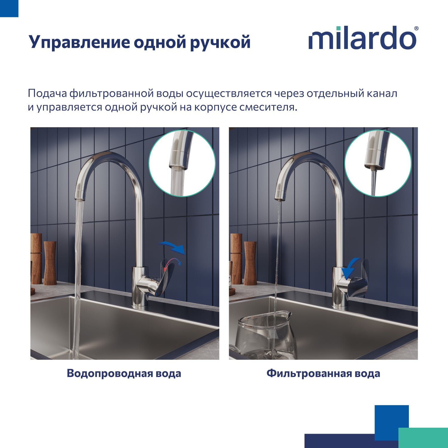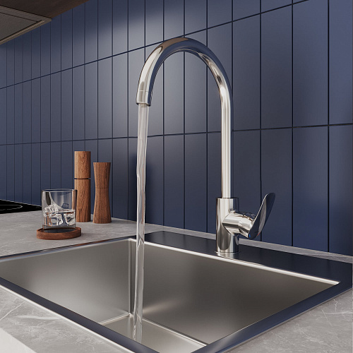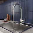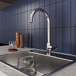 Смеситель для кухни с каналом для фильтрованной воды, однозахватный, латунь, никель-хромовое покрытие, керамический картридж 35 мм с функцией подачи фильтрованной воды, двухканальный пластиковый аэратор Neoperl М24 с дополнительным каналом для питьевой воды. Смеситель управляется с использованием только одной ручки. Подача фильтрованной воды осуществляется при повороте ручки в закрытом состоянии. В комплекте: гибкая подводка, крепеж. Упаковка: картонная коробка, индивид мешок.