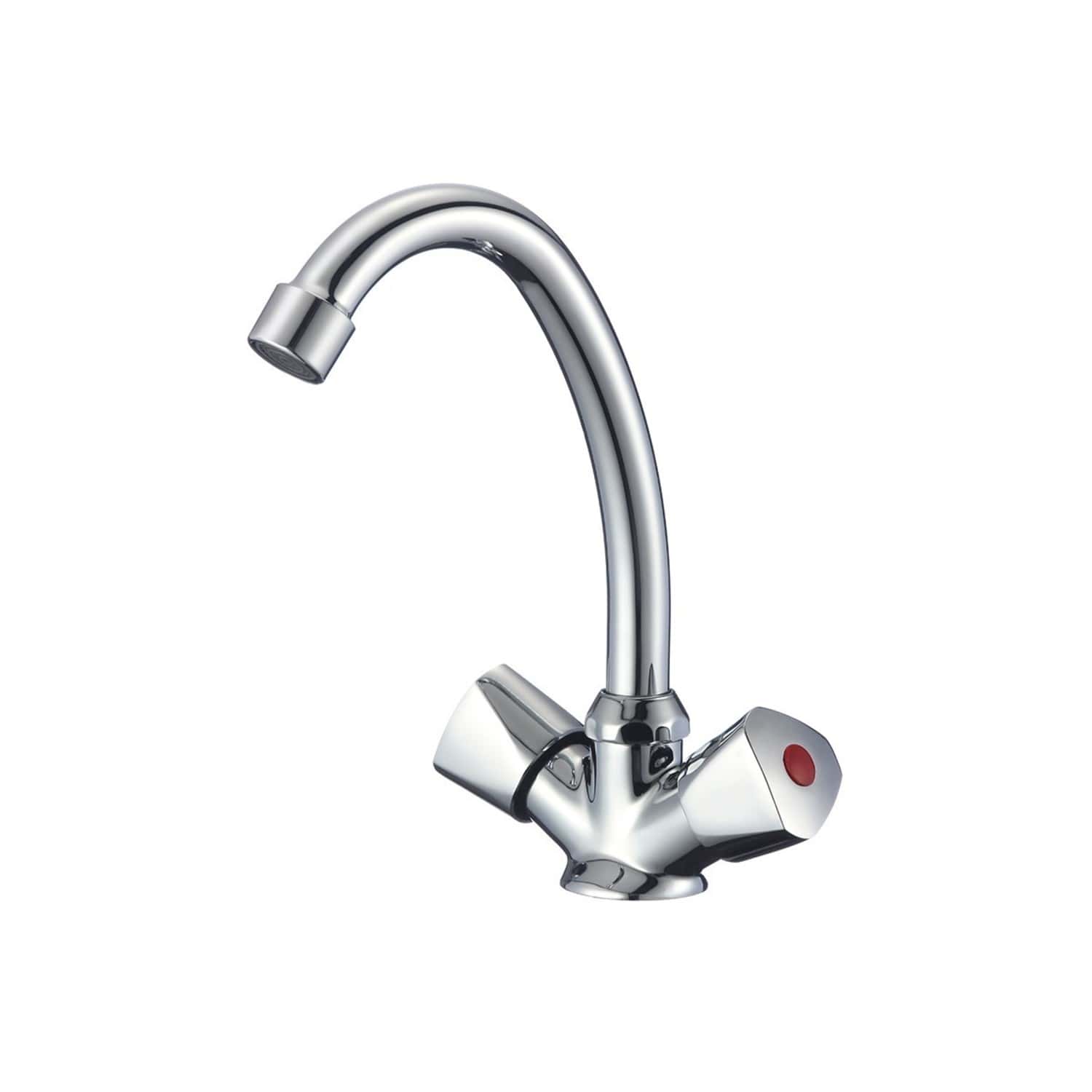 Смеситель для умывальника, двухзахватный, латунь, никель-хромовое покрытие, керамические кранбуксы, пластиковый аэратор.