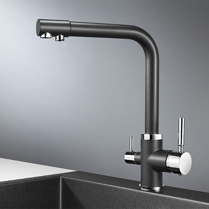 Смеситель Granula 2015, с питьевой водой, ЧЁРНЫЙ, искусственный камень.