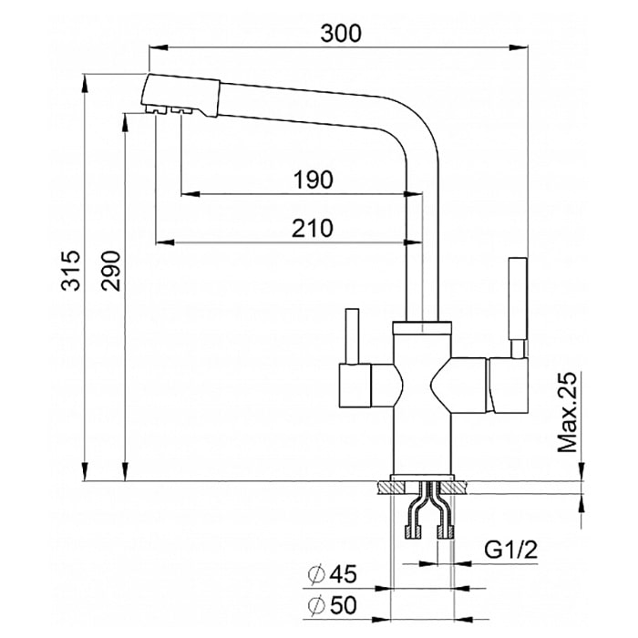 Комплектация: Гибкая подводка (2 шт.); Набор для крепления; Прокладки уплотнительные (2 шт.); Аэратор.
