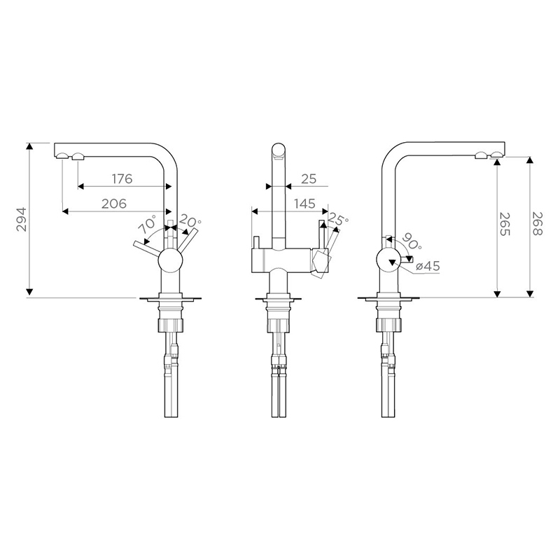 Подводка: гибкая, в оплетке из нержавеющей стали, полный комплект соединений для подключения